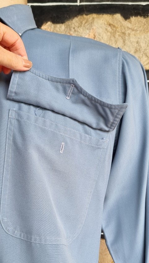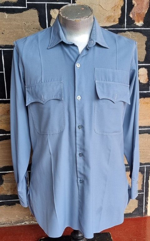 Vintage, Workmen’s Shirt, Blue, Poly/Viscose, Made in USA.