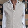 Waistcoat, seersucker, cotton/poly, taupe/white, USA imported.