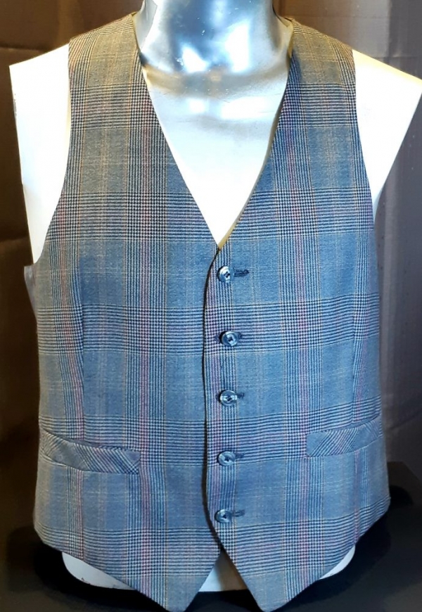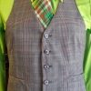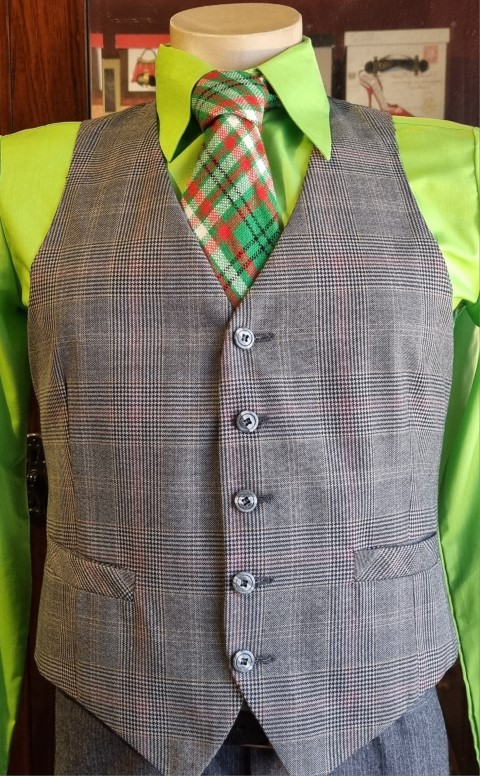 The gallery photo shows a quirky modern why to wear a vintage waistcoat, by adding a lime green shirt and groovy tartan tie, these items are not included.
