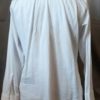 This shirt has a small neck compared to the chest measurements. The button holes where the black buttons are, are a tad loose, they are so tiny! So they will need a small repair to make them smaller, this is the reason for the price reduction.