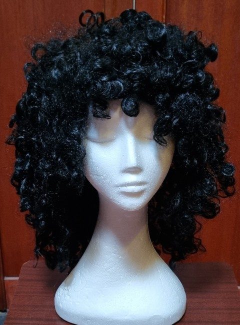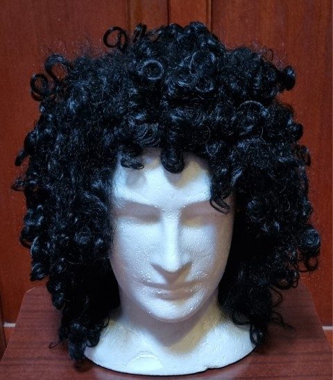Wig, Black Long 80’s Curly, ‘Cher’, or Brian May’, synthetic, by ‘Carnival Products’