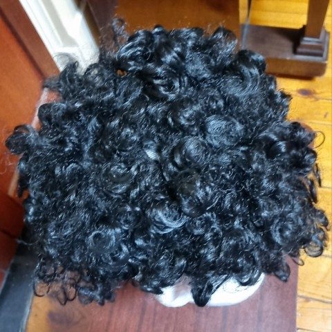 It has been freshly shampooed and conditioned with wig products and is in excellent condition, in fact, it has only been worn once.