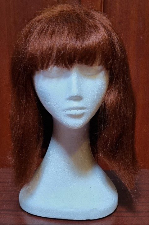 Wig, Red, shoulder length with fringe, synthetic, by ‘Carnival Products’