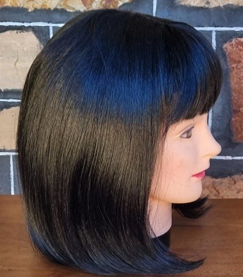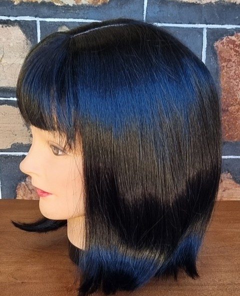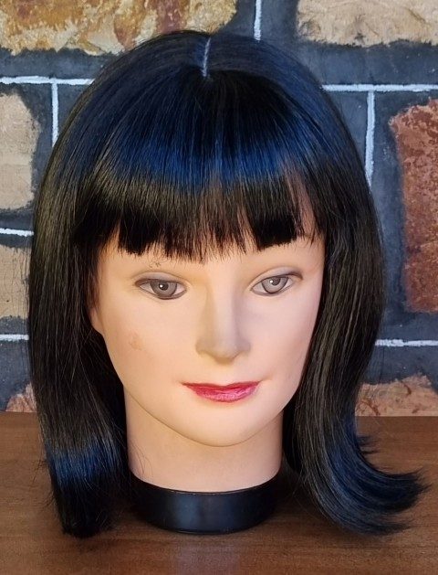 Wig, Shoulder length black with fringe, synthetic, ‘New’, by ‘Fun Wigs’