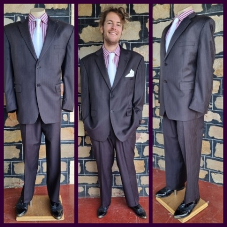 Product Condition: Used1960’s, Single Breasted Wool Suit, Grey, by ‘Fletcher Jones’, size M-L