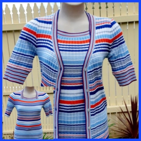 1980’s, Singlet top, poly/cotton, patchwork print, & 3/4 grey leggings, size M