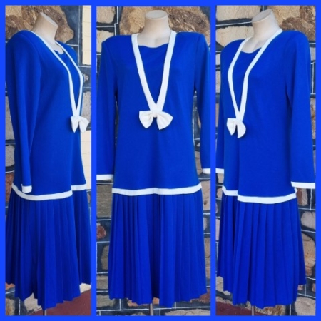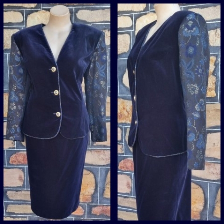 Product Condition: Used1990’s Double Breasted Suit, Royal Blue, by ‘Cennini’, Viscose/Polyester, size S-M