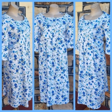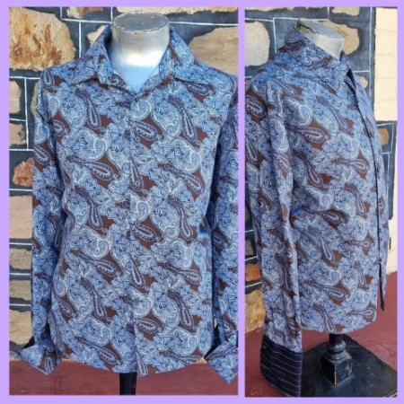 Product Condition: Used1970’s Tunic Knit, Rust/Cream/Grey/Tan print, size L, acrylic.