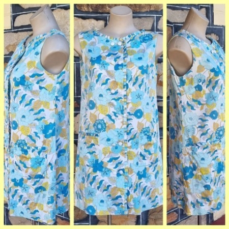 Product Condition: Used1970’s Tunic Knit, Olive/Cream/Grey/Tan print, size L, acrylic.