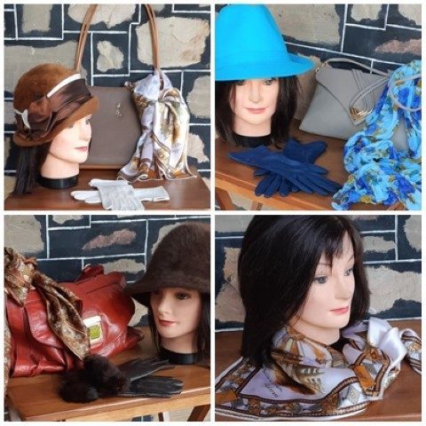 Hats, Bag, gloves, scarves and heels, we have an enormous range, from all eras, all styles and colours.